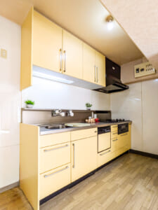 対面式キッチンの導入。大胆にキッチンの位置を移動。独立していたキッチンを対面式に変更。これにより、料理をしながら家族とのコミュニケーションが取りやすくなりました。