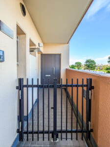 南西側バルコニー。ヤシの木が並び、リゾート感を演出。