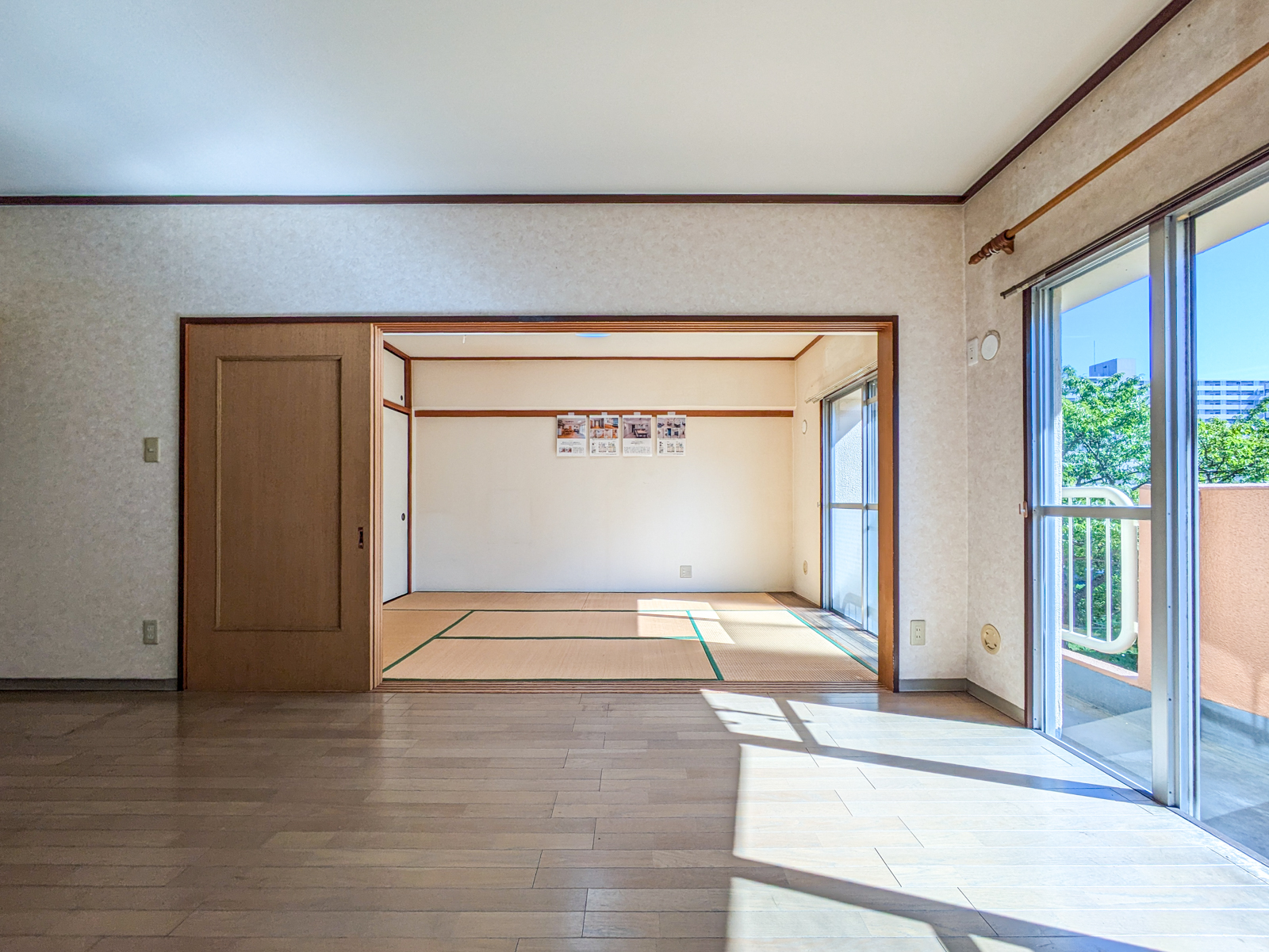南東向きで開放感のあるLDK。空室のため、いつでもご見学可能です。