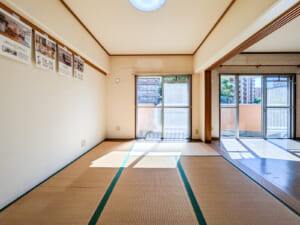 1階の和室6帖。窓にはシャッターがあり、安心感があります。