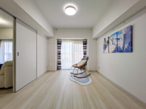 壁面に断熱施工を施し、サッシも交換する特別なリノベーションは、弊社のグループ企業「アールデザイン」が施工しました。室内の温度変化を抑え、心地よくお過ごしいただけます。
