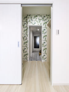 門扉付きのパステージが、居住空間の独立性を高めています。