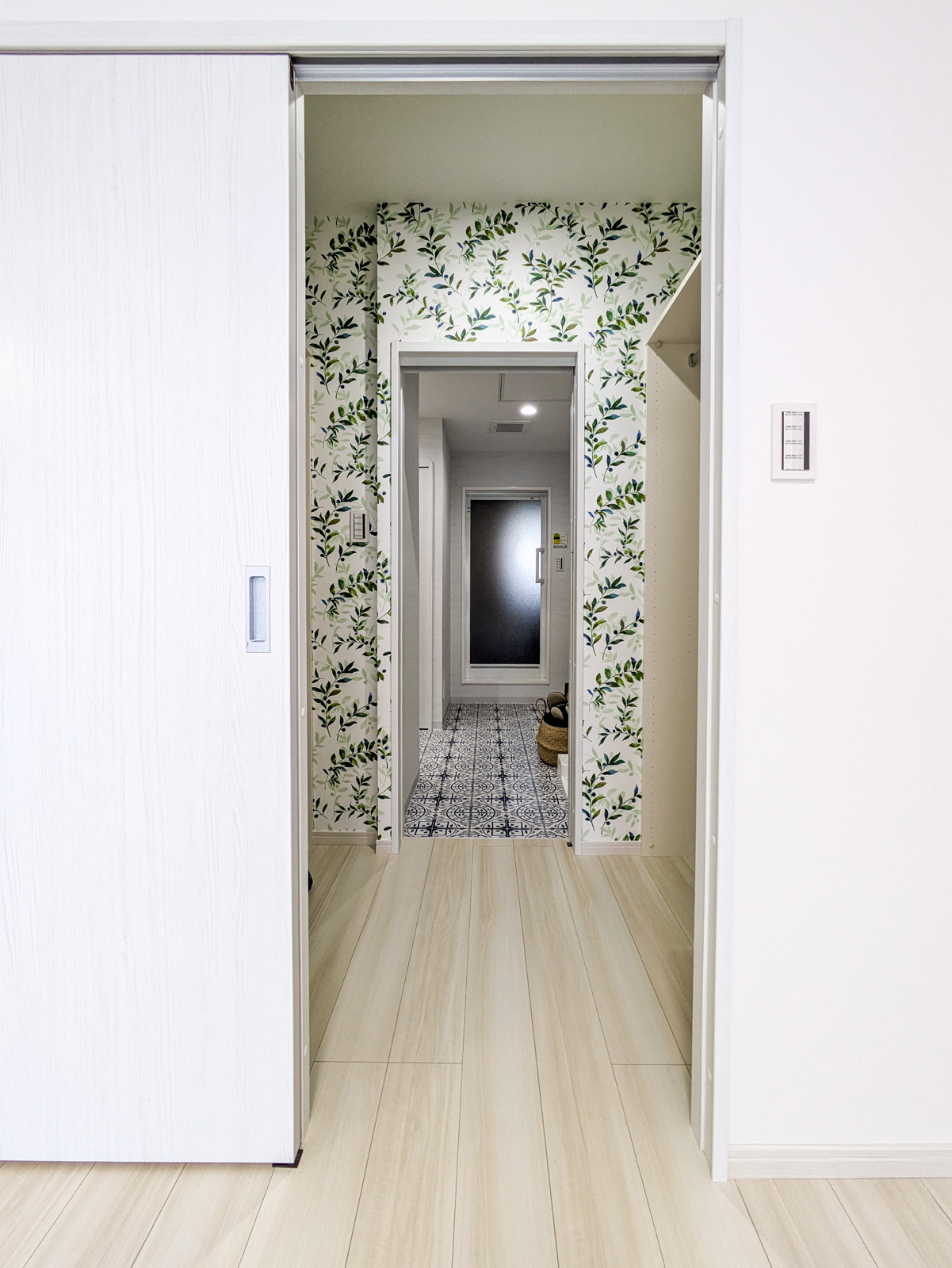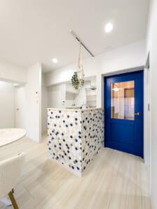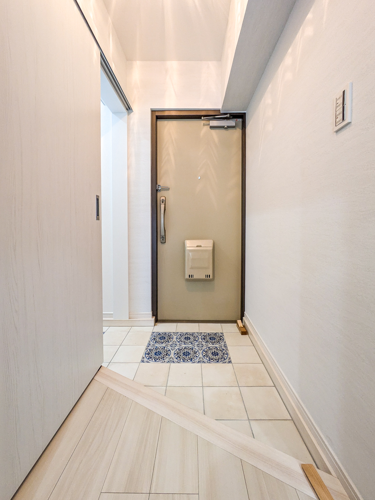 玄関にはおしゃれなタイルを施工しました。住まいの顔となる空間を演出しています。