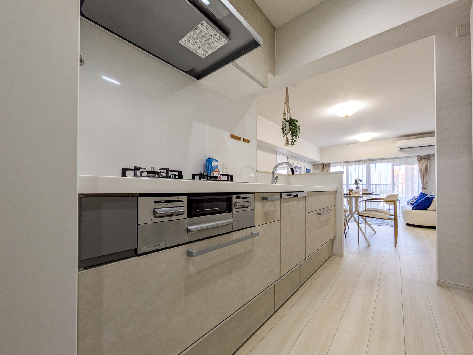 パークシティ東京ベイ新浦安Sol A棟に、弊社グループ企業「アールデザイン」が施工したこだわりのリフォームが完成しました。高品質なトーヨーキッチンスタイルの「ゼロ動線キッチン」を採用し、大型食洗機や混合水栓も2つ備え、スムーズな暮らしを実現します。TOTO製のユニットバスとトイレ、リビングドアの交換、クロス・フローリングの貼り替えなどのリフォームも施しました。リフォーム施工担当と一緒に見学できます(要予約)。