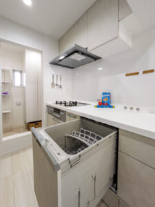 大容量の大型食洗機で、日々の後片付けもスムーズに。キッチン空間をより広く使えます。