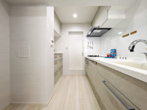 ゆとりのある背面収納。空間を有効活用し、洗練されたキッチンを演出します。
