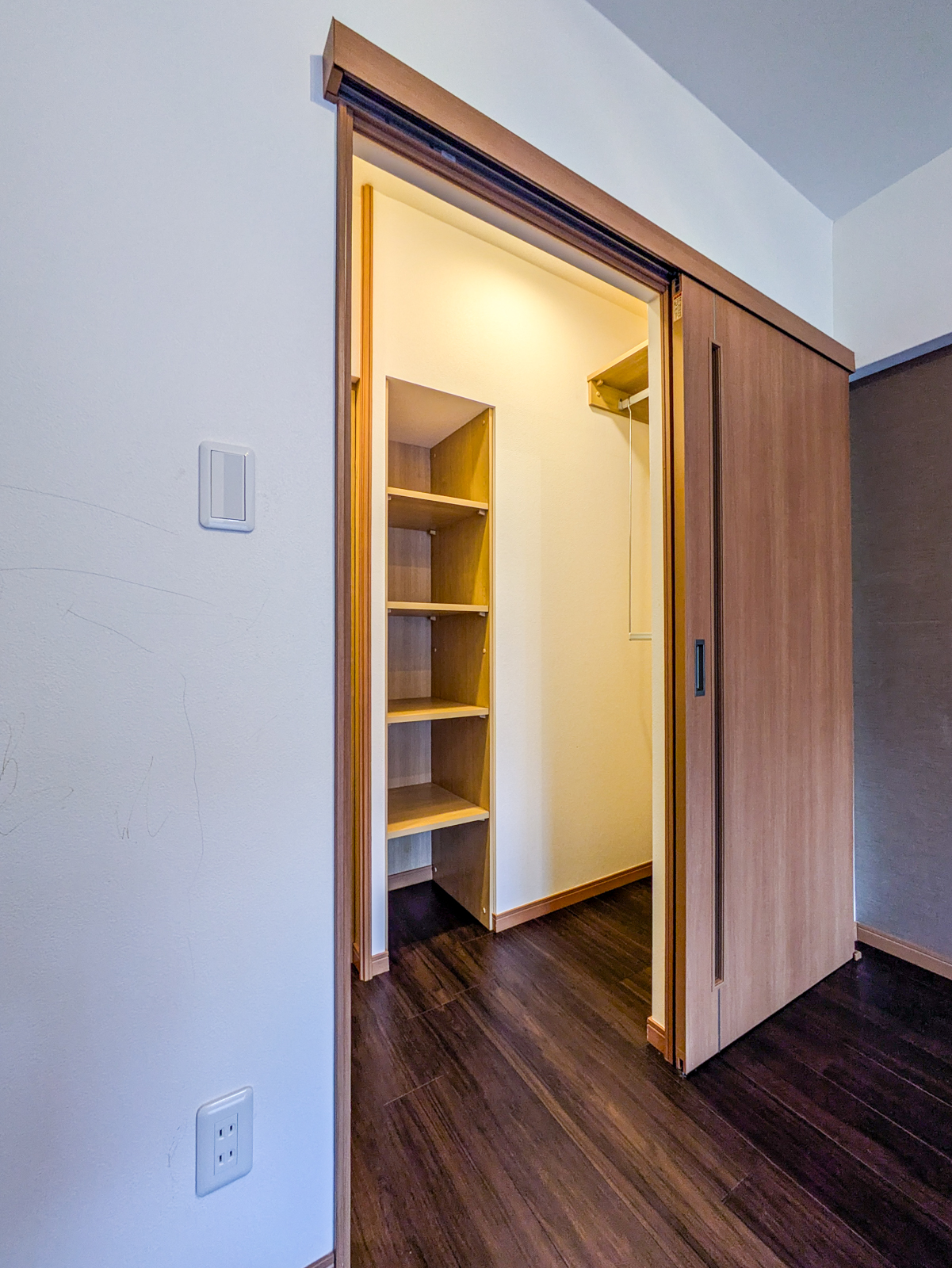 サービスルームにはクローゼットを備えております。多目的に利用できる空間です。