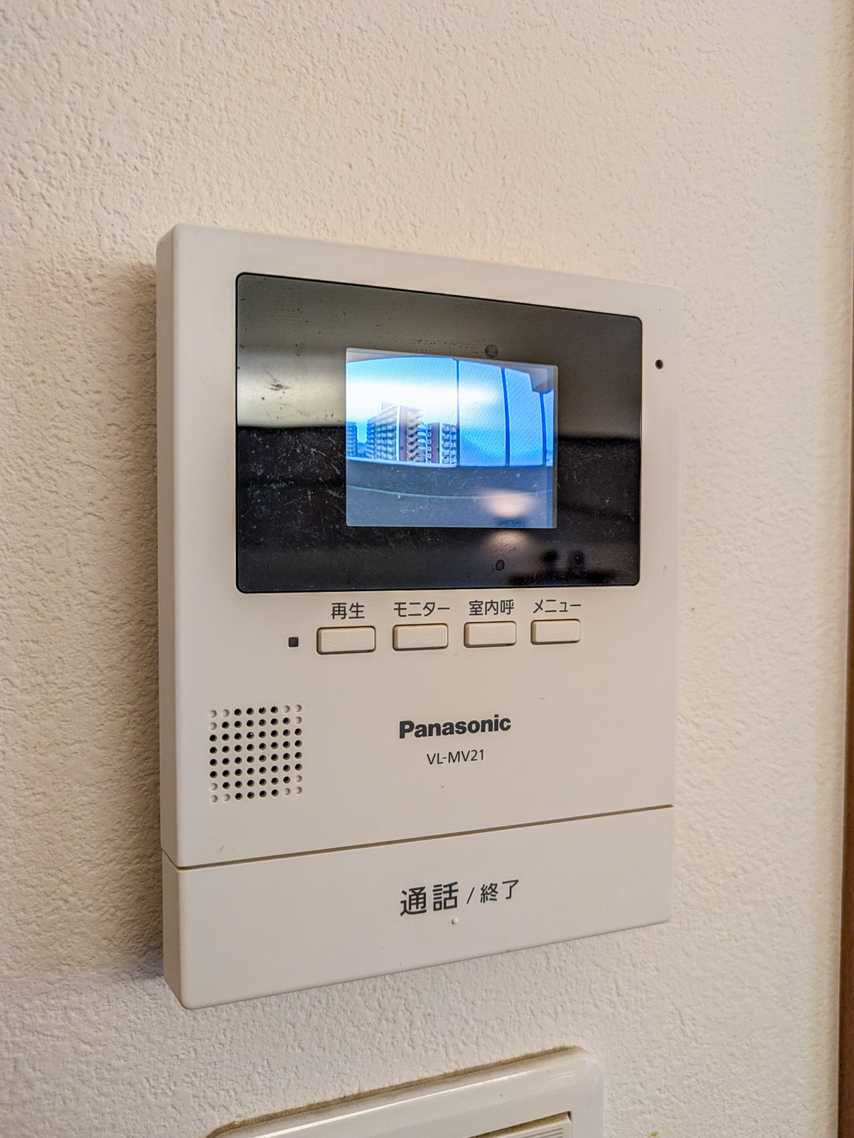 来客の顔を確認できるモニター付きインターホン。録画機能を備えており、不在時の訪問者も確認可能です。