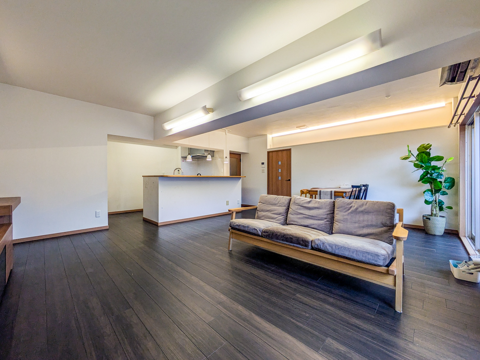 2015年6月のリフォームでLDKを約21帖へ拡張。ゆとりある広さと、充実の造作収納を備えた住まいです。