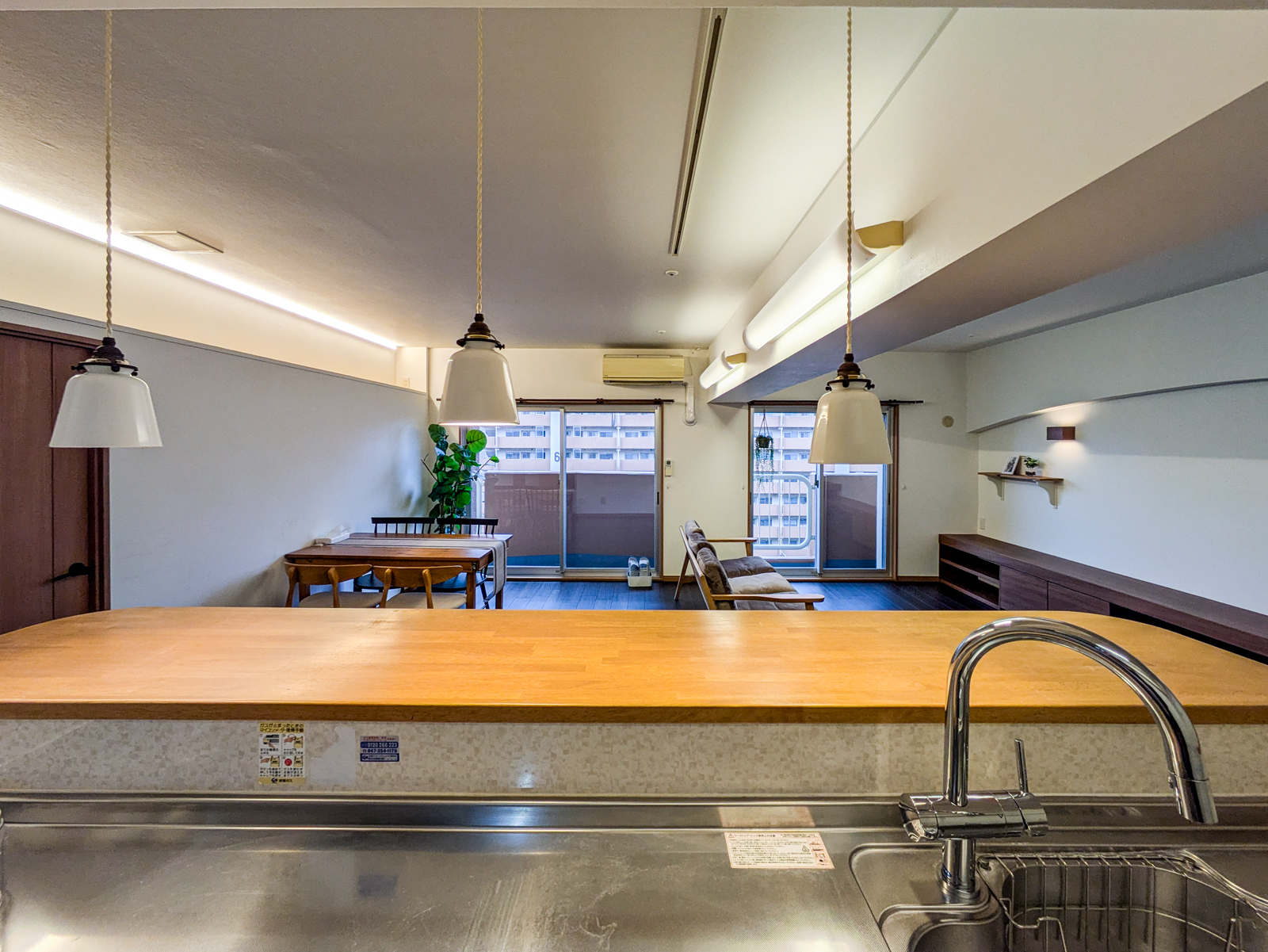 配膳や軽食に便利な対面カウンターを採用。2015年リフォームで刷新された、開放感のあるキッチンです。