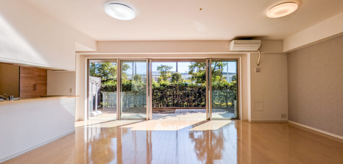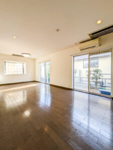 南東向きの明るいリビング。空室のため室内をゆっくり見学可能です。118㎡超のゆとりをご体感ください。