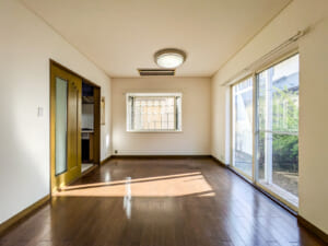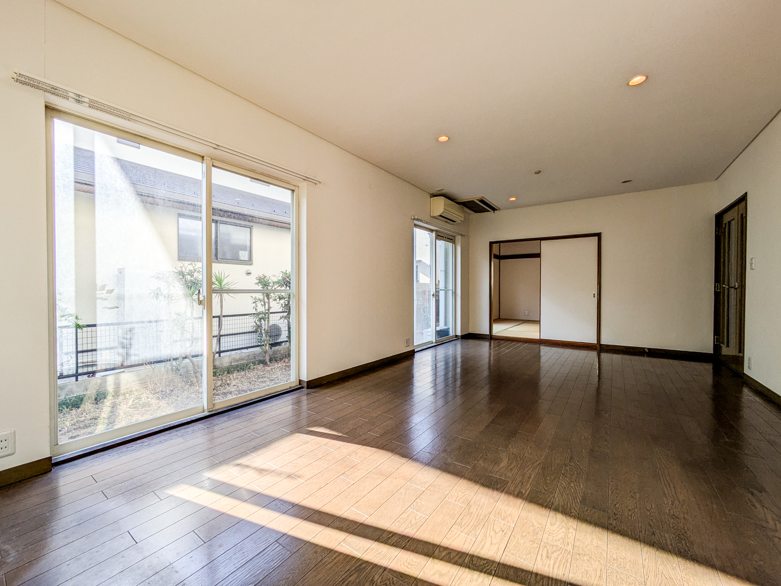 専用庭へ続く明るいLDK。空室につき、リフォーム済みの室内を落ち着いてじっくりと見学いただけます。