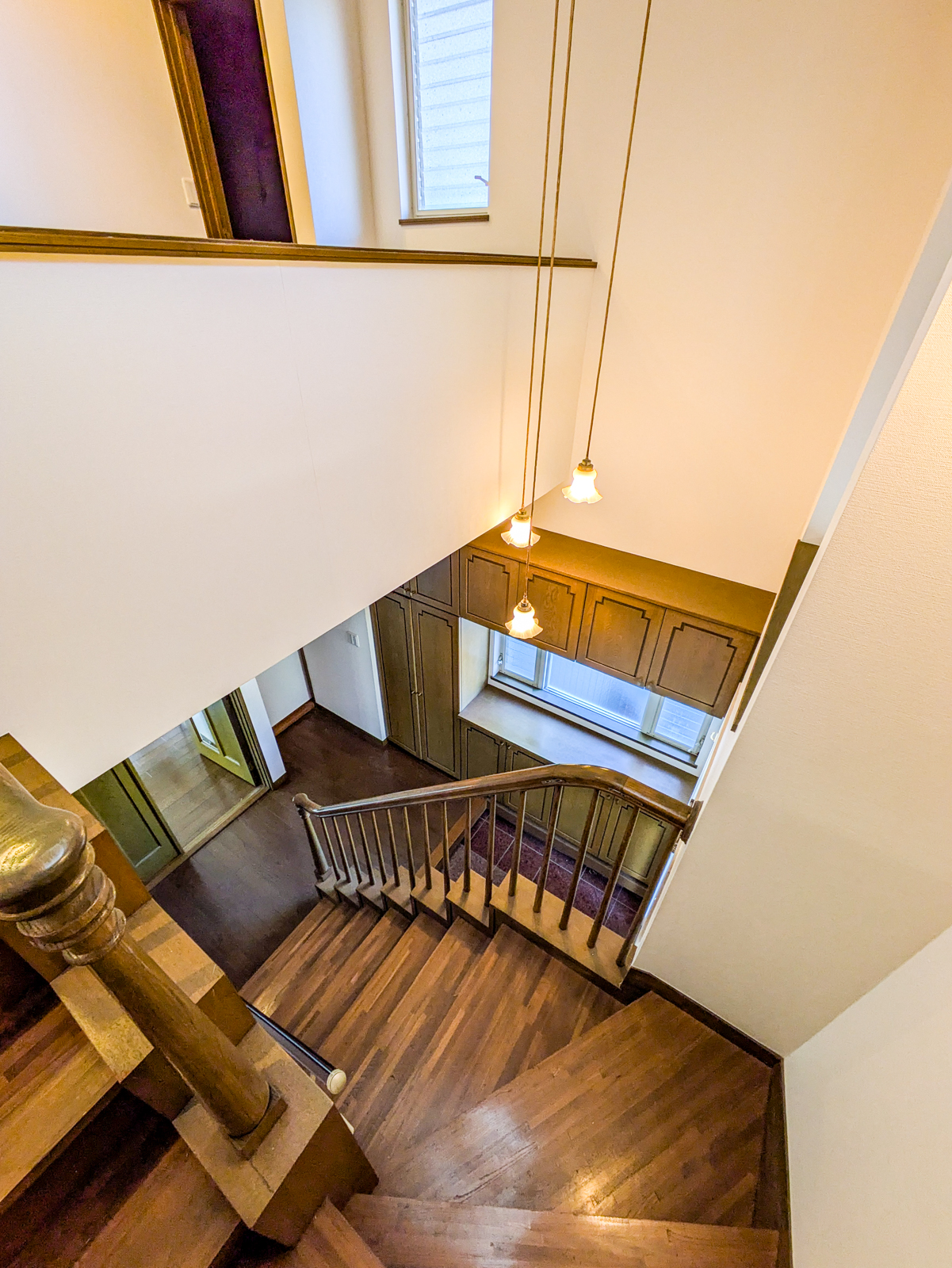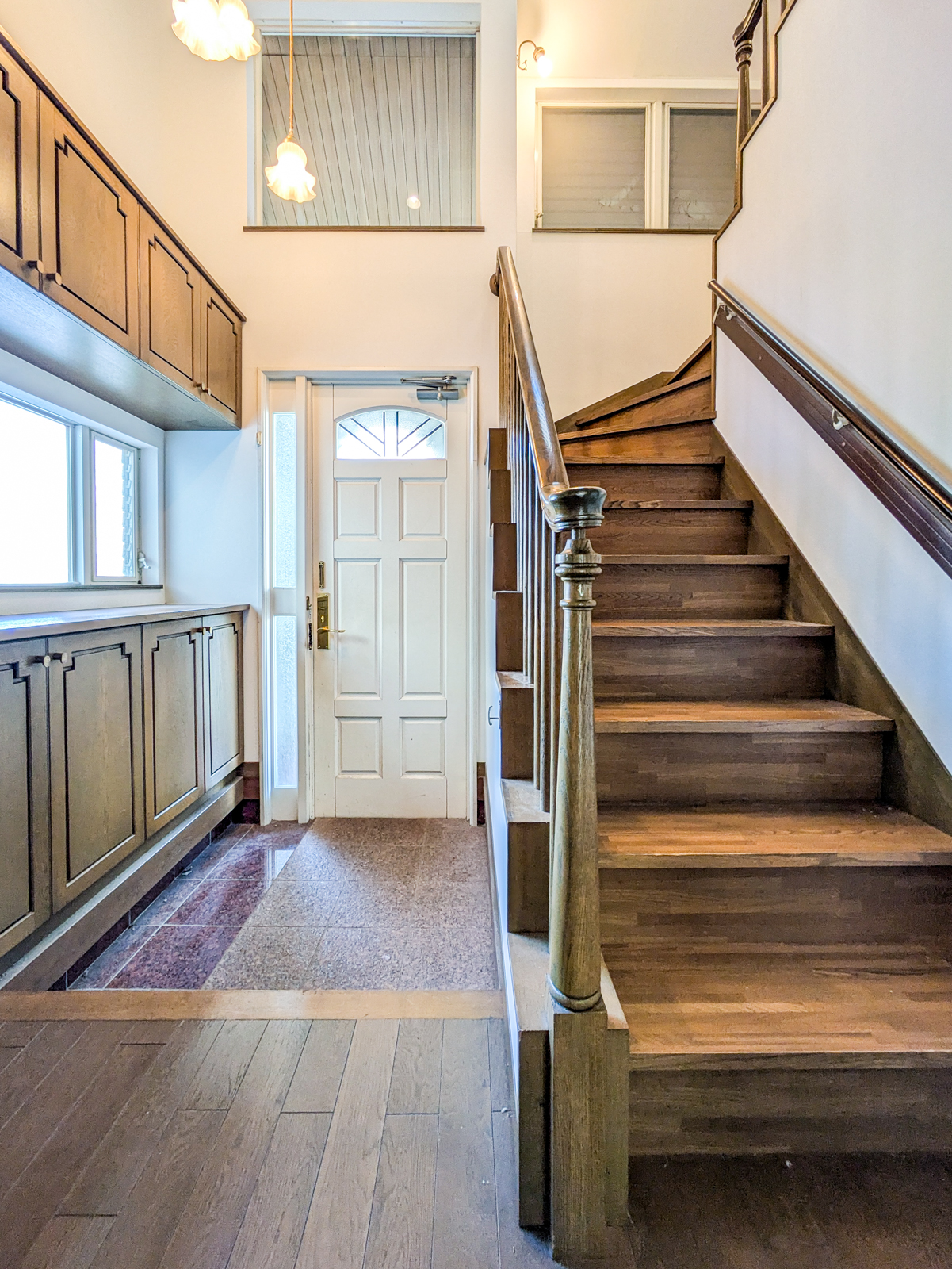 2階へと続く階段。戸建て感覚でお住まいいただける2階建てテラスハウスです。