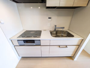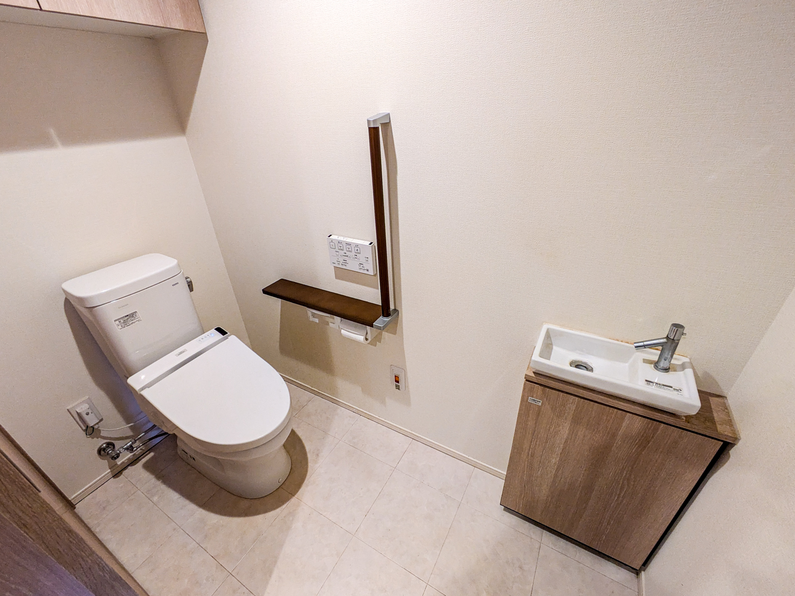 住まいは安心・安全に配慮した設備・仕様。緊急コールシステム(リビング・ダイニング・トイレ・浴室に各1個)、生活見守りセンサー、玄関扉引き戸、玄関・トイレ・浴室手摺などを備えています。火が出ない安全なIHコンロ、キッチン浄水器一体型水栓など、暮らしやすさを考えた設備も充実しています。