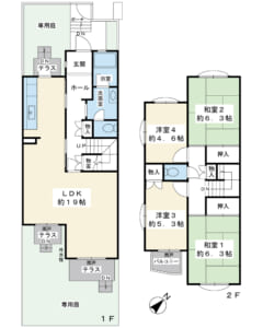 間取内容 | LDK 19畳 和室 6.3畳 和室 6.3畳 洋室 4.6畳 洋室 5.3畳 |