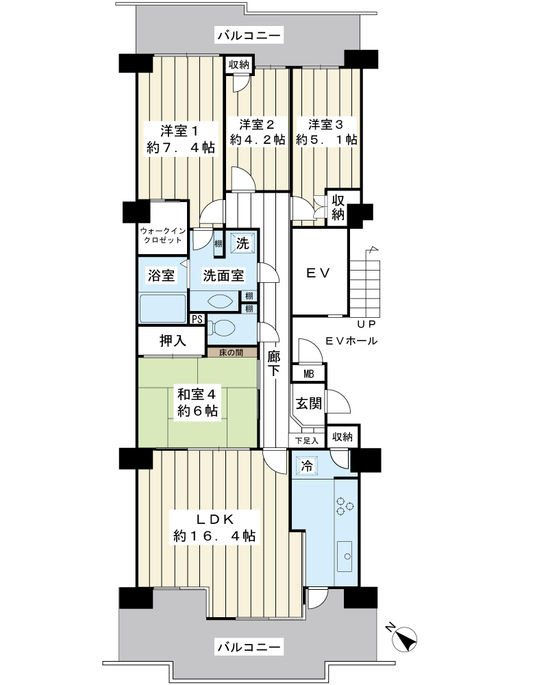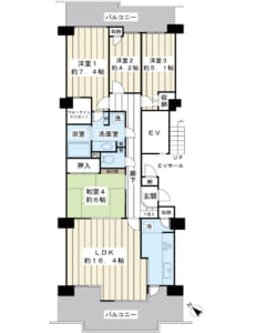 間取内容 | LDK 16.4畳 3階 1室 洋室 7.4畳 3階 1室 洋室 4.2畳 3階 1室 洋室 5.1畳 3階 1室 和室 6畳 3階 1室 |