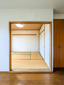 約12.9帖のLDKに隣接する和室は、客間や多目的スペースとして使え、ご家族の多様なニーズに応えます。室内には、対面カウンターキッチンや浴室暖房換気乾燥機など、日々の暮らしをサポートする設備も整っています。