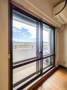 南東向き2階住戸は、午前中から柔らかな光が差し込む「陽当り良好」な住まいです。バルコニーに面した窓には二重サッシを採用し、外からの音を軽減しています。