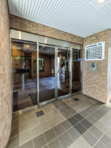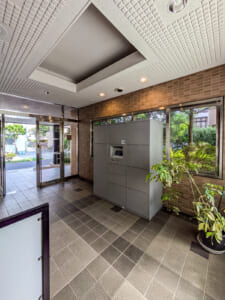 エントランスはオートロック、宅配ボックスがあり、安心感を高めます。徒歩1分にファミリーマートがあり、お買い物にも便利です。