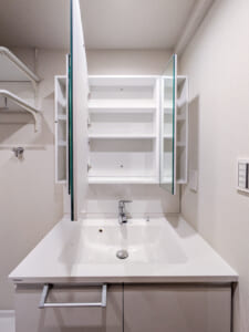 2階に浴室、洗面室、洗濯機置き場がまとまっており、家事動線が考慮されています。