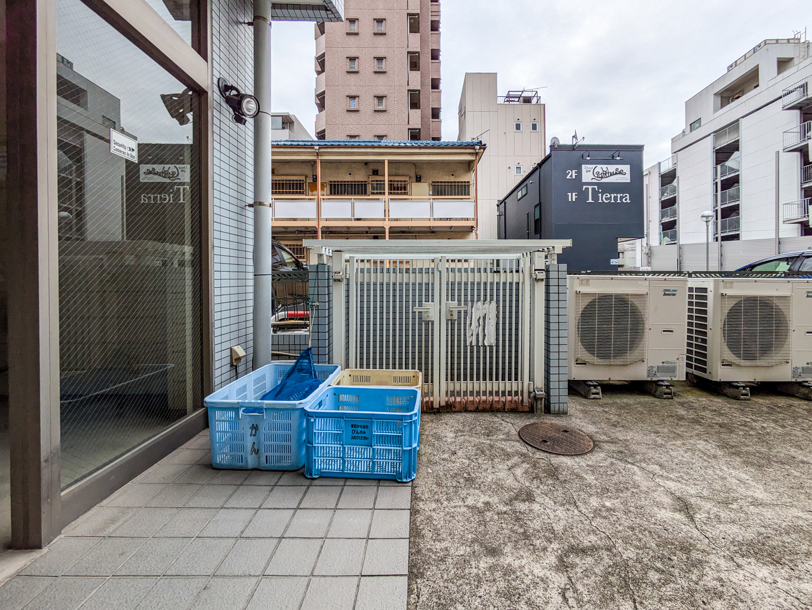 | 設備・条件 | オートロック 防犯カメラ 都市ガス 公営水道 排水下水 エレベータ 宅配ボックス 駐輪場 契約不適合責任免責(土地・建物ともに)・確認済証あり・検査済証なし・ゴミの回収条件あり