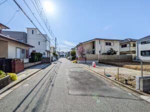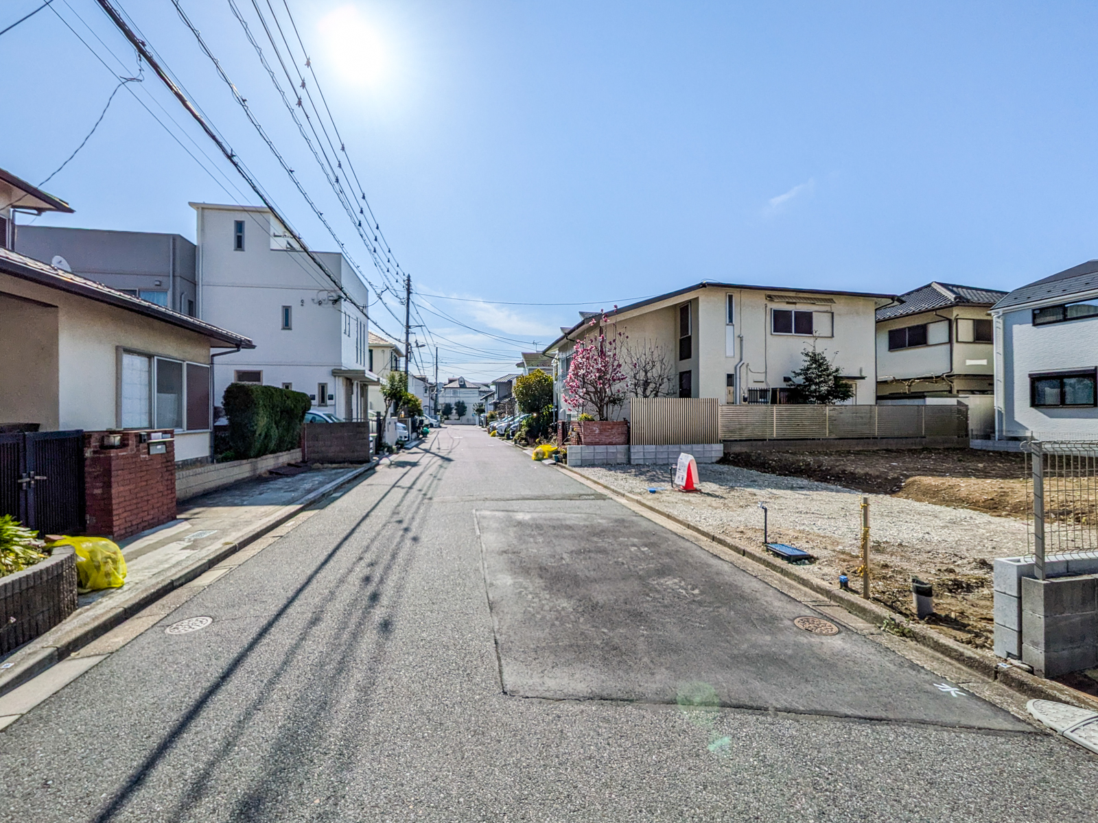 現地は幅員約6mの公道に面しており 、車同士のすれ違いもゆとりを持って行えます。第一種低層住居専用地域の落ち着いた雰囲気は 、静かな暮らしを求める方に適した環境と言えるでしょう。現在は更地となっており、新たに古家を解体する費用がかかりません。資金計画にお悩みの方にとっても、初期費用を抑えられる点は大きなメリットです。駅徒歩16分という立地は、日々の通勤・通学において良い運動になる距離感です。更地のため、建物の配置イメージも掴みやすくなっております。ぜひ一度、現地をご覧ください。