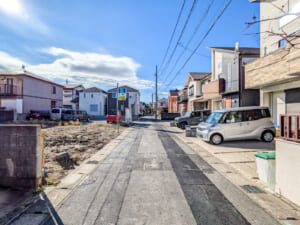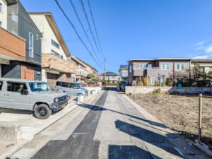 前面道路は公道で、車庫入れなどの動線も確保しやすい環境です。