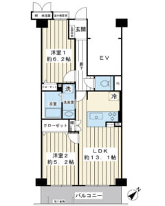 | 間取内容 | LDK 13.1畳 2階 1室 洋室 6.2畳 2階 1室 洋室 5.2畳 2階 1室 |