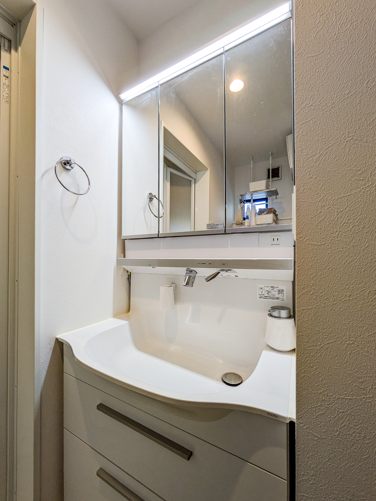 2024年11月に2階バルコニーへ庇を新設し、2025年1月には洗面化粧台を三面鏡・タッチレス仕様のモデルに交換しました。