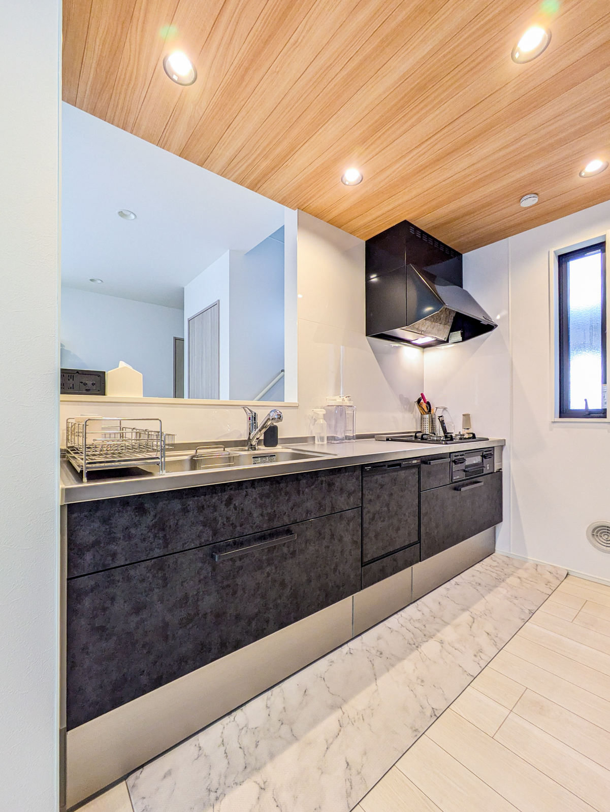 約16.1帖のLDKには足元から温まる床暖房、キッチンには家事を支える食洗機を揃えています。
