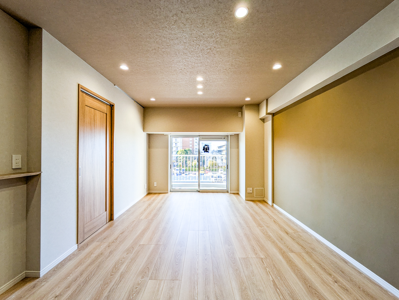 2026年1月にリノベーションが完了した住戸です。弊社グループ企業のアールデザイン施工により、内装や水回り設備の一新に加え、全サッシ交換や断熱施工を実施しました。ZEH水準の断熱性能を追求することで、室内温度の変化を抑え、電気代の節約にも貢献します。
