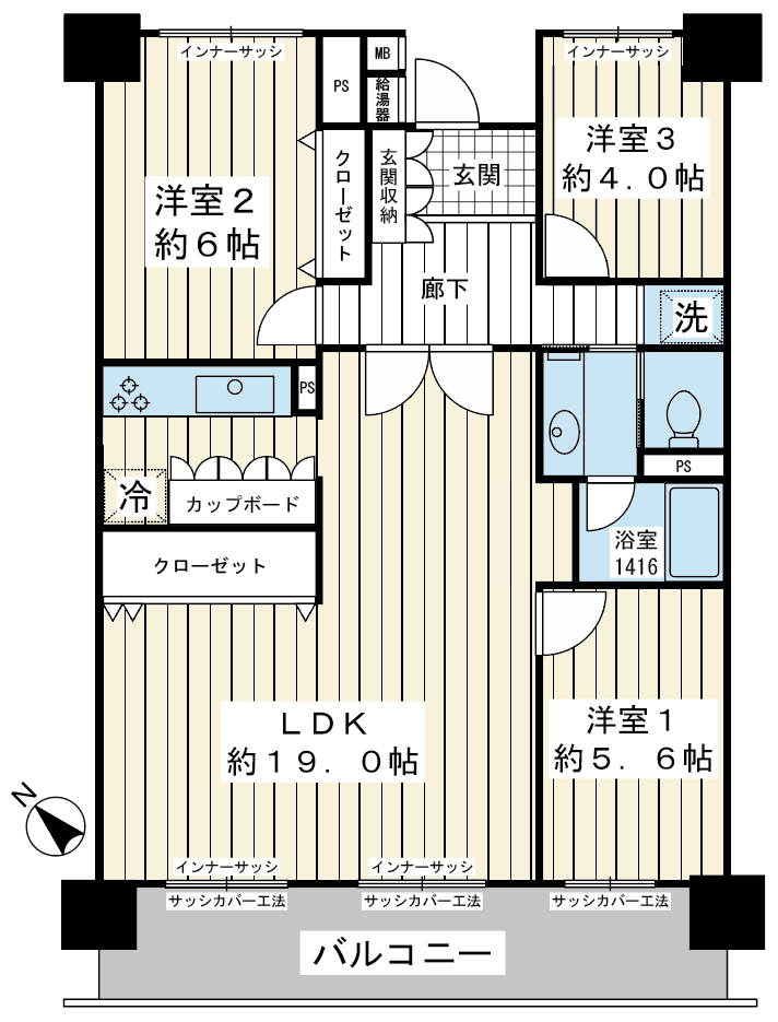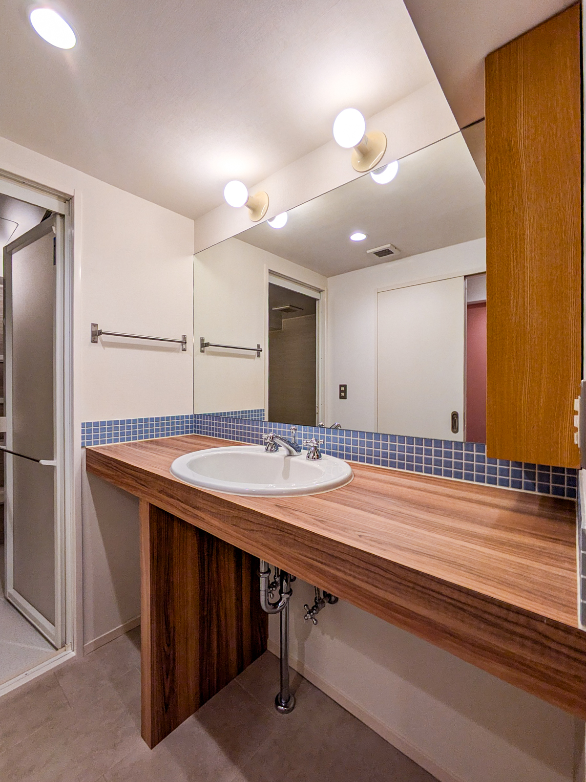 2013年に内装リフォーム実施。インナーサッシ設置(洋室1を除く)。全室床貼替(洋室はフロアタイル・LDはフローリング)。全室クロス貼替。システムキッチン(IKEA)・ユニットバス(1416・浴室サイズアップ)・造作洗面台・トイレ・給湯器交換。専有部の配管交換。玄関タイル貼替。下駄箱設置。間取り変更(和室を洋室に変更・LD横の居室とLDを繋げて3LDKに変更)。全建具交換。