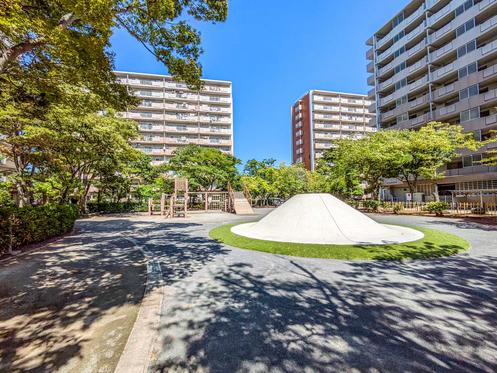 敷地内には緑が多く、お子様が遊べるアスレチックやテニスコートがございます。