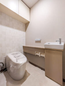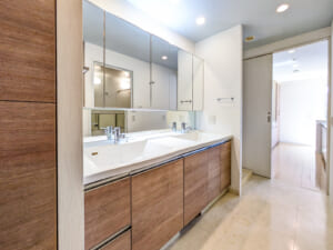 約29.3帖の広大なLDKには床暖房を、キッチンにはディスポーザーを設置しました。2WAY動線のキッチン・洗面室やダブルボウル洗面、1620サイズの大型浴室など、家族で使いやすい室内設備を揃えています。