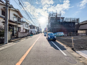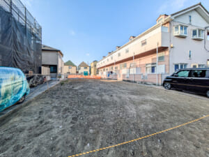 ご紹介するのは土地面積108.71㎡の2号棟区画。現況更地のため、解体費用をかけずに建築工程へ進むことが可能です。建築条件はございませんので、建築時期や施工会社の選択も自由です。