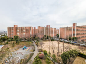 豊かな緑に包まれた広大な敷地内には、遊具のある公園やテニスコート、夏季限定の子ども用プール、集会所など、大規模物件ならではの共用施設が揃っています 。