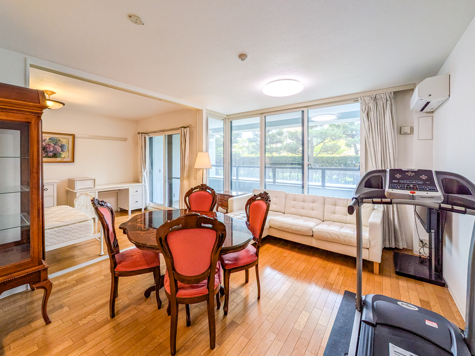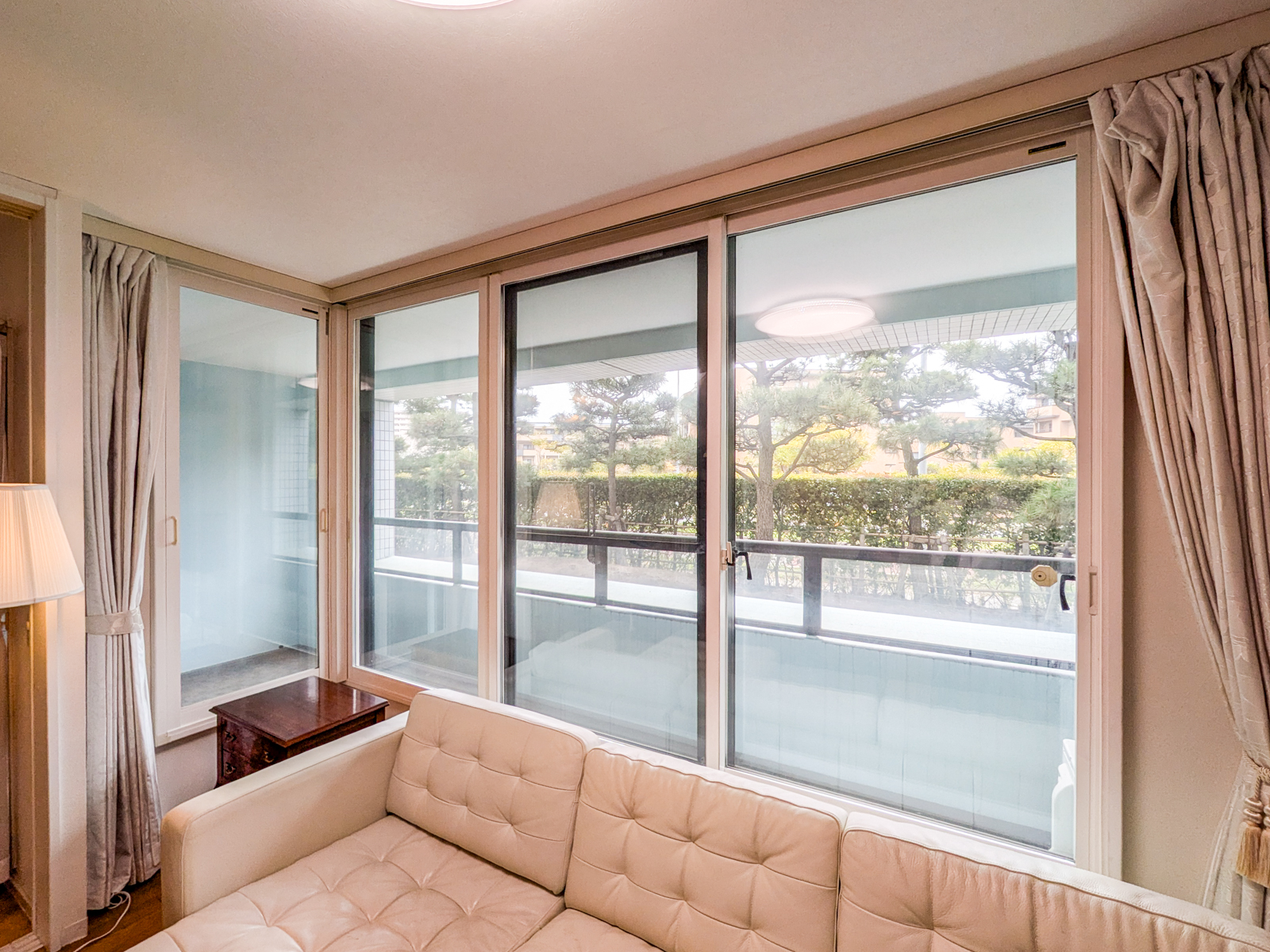 全ての主要な窓に二重窓(インナーサッシ)を設置しており、断熱性や遮音性に配慮された室内環境が整っています。窓が二重になることで、外部からの音を遮るだけでなく、防犯面でも心理的な安心感につながる設計です。