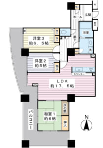 | 間取内容 | LDK 17.5畳 9階 1室 和室 6畳 9階 1室 洋室 5畳 9階 1室 洋室 6.5畳 9階 1室 |
