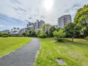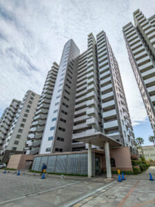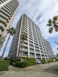 大成建設施工、総戸数600戸のビッグコミュニティです。建物構造には、強度と粘り強さを兼ね備えたSRC(鉄筋鉄骨コンクリート)造を採用。地盤対策として、地下約46~52mまで打ち込んだアースドリル拡頭拡底杭工法や、土質硬化剤を配合した「SEM工法」による地盤改良を実施し、液状化への備えを徹底しています。また、外部の金属部には錆に強い素材や塗装を採用し、ベイエリアならではの塩害対策にも配慮しています。