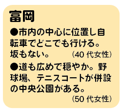 - 市内が平坦で自転車移動がラク(坂が少ない)